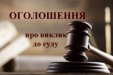 ОГОЛОШЕННЯ ПРО ВИКЛИК ДО СУДУ