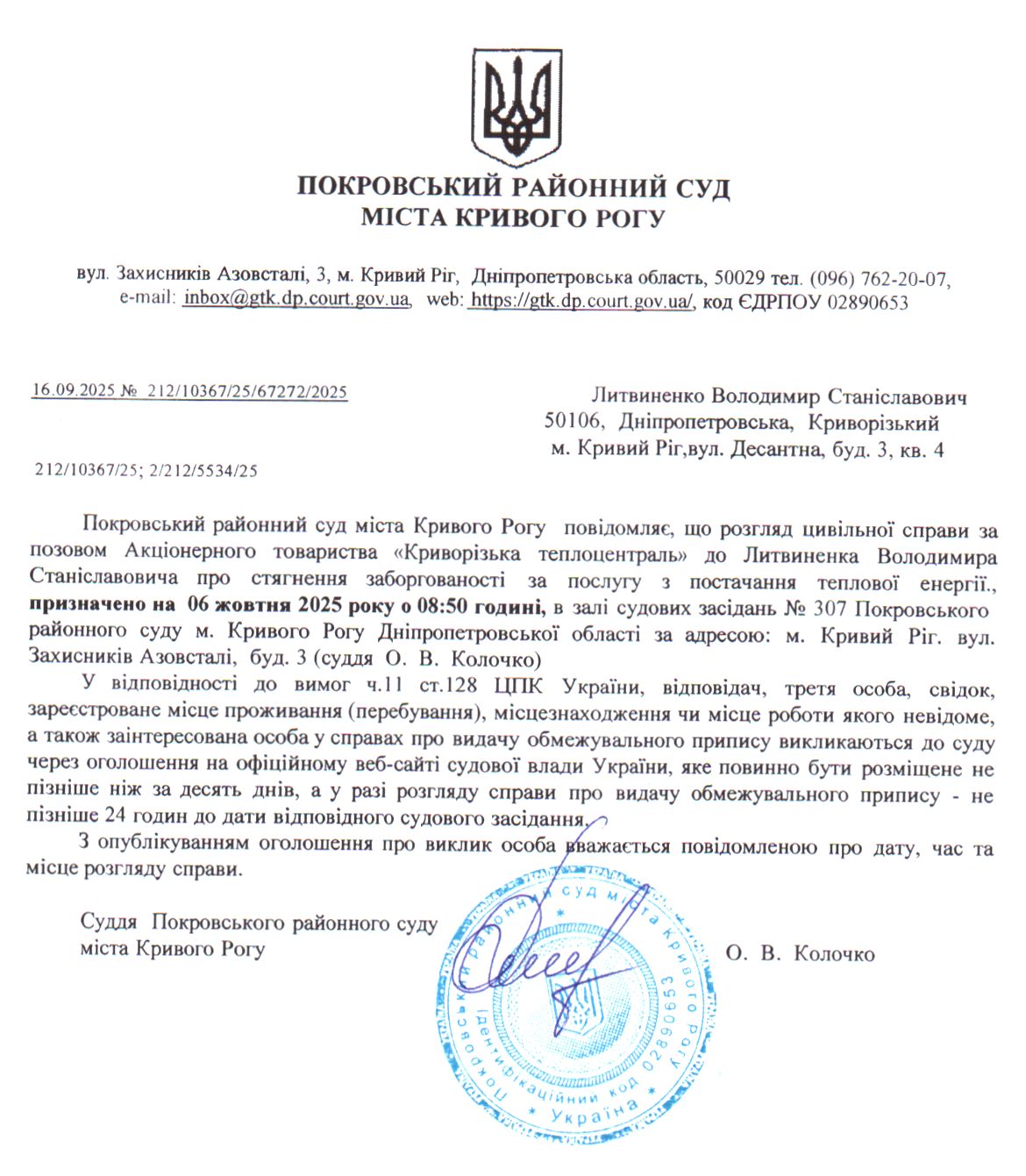 Увага, суд перейменовано з Жовтневий районний суд м. Кривого Рогу