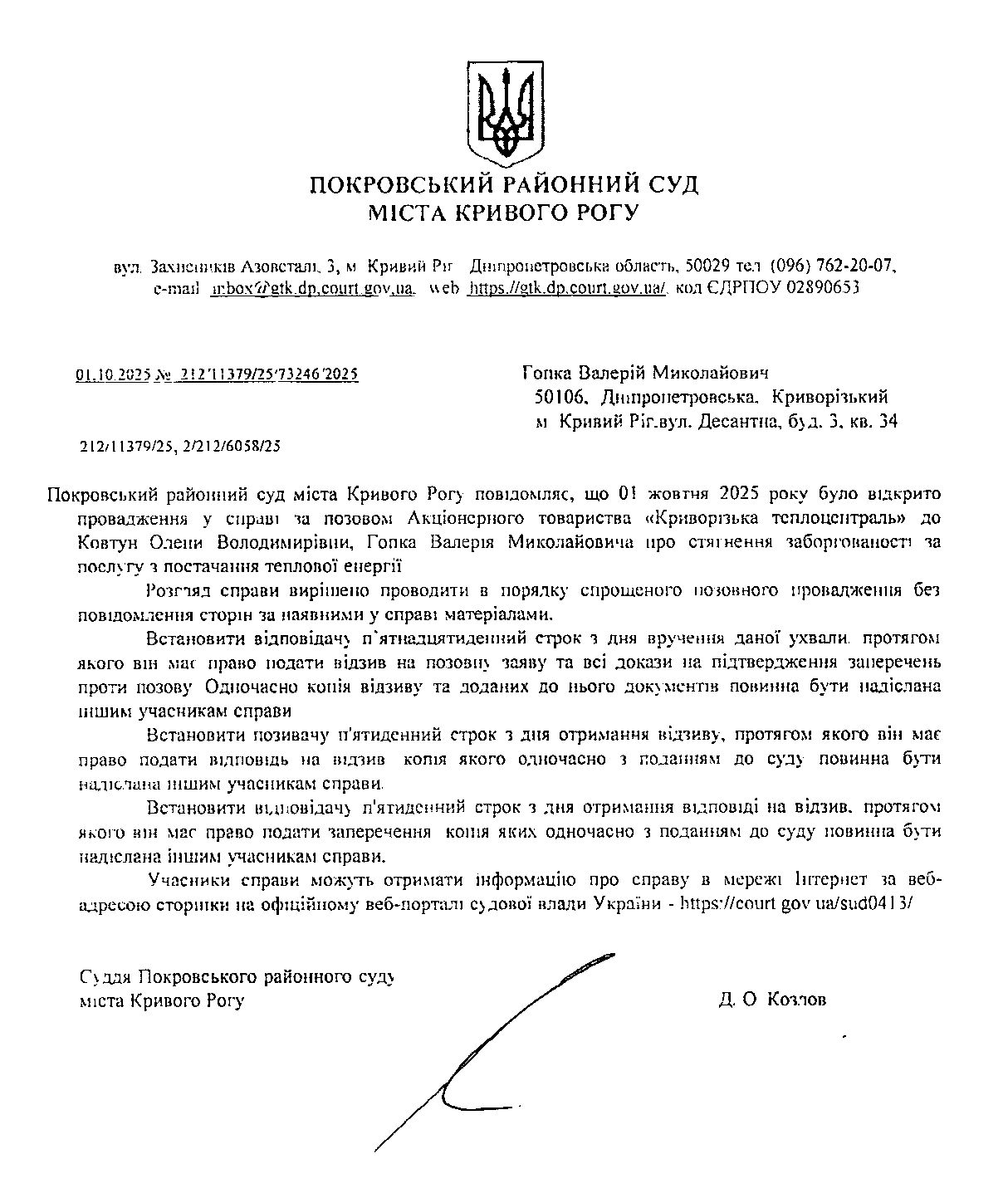 Увага, суд перейменовано з Жовтневий районний суд м. Кривого Рогу