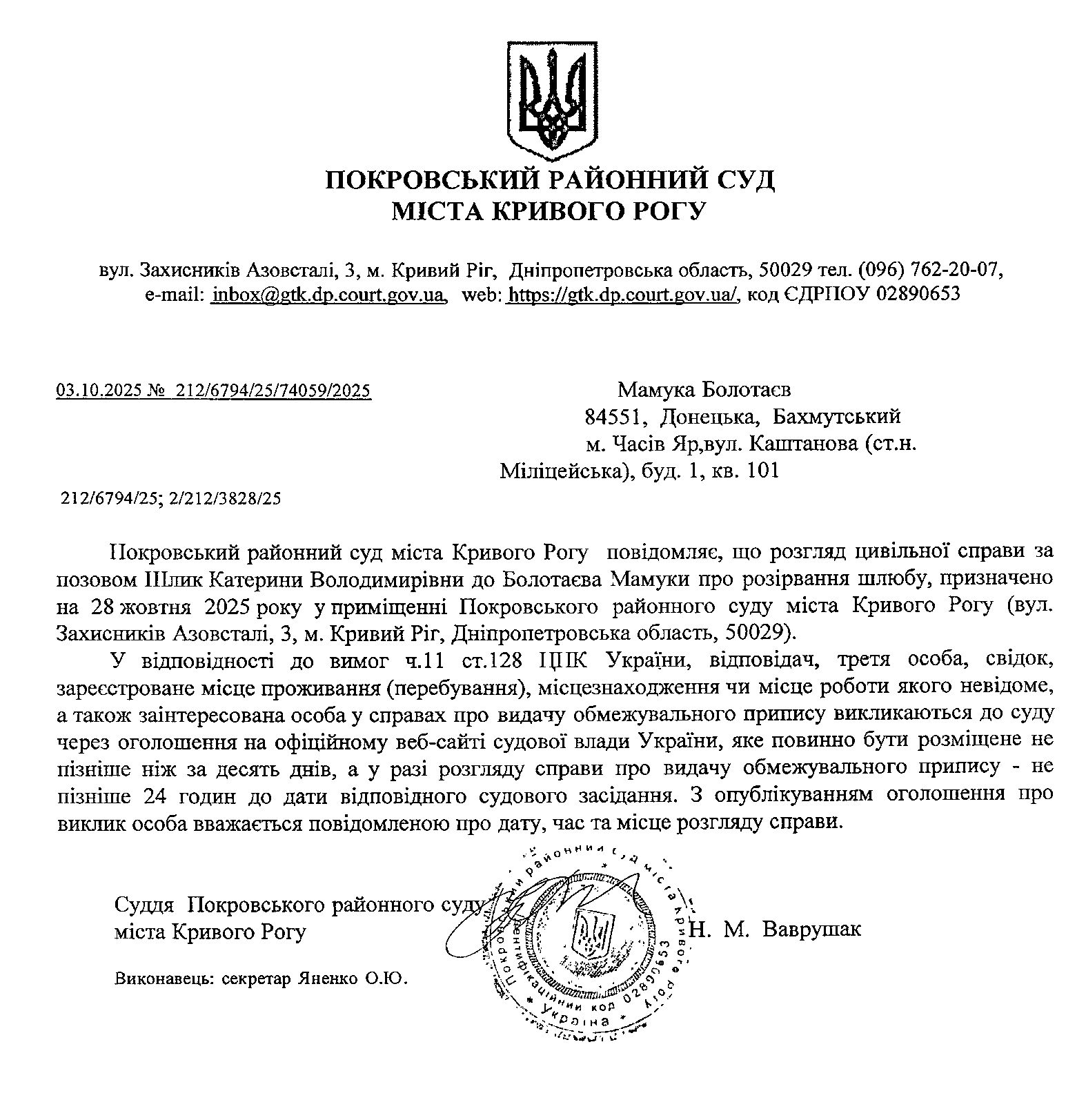 Увага, суд перейменовано з Жовтневий районний суд м. Кривого Рогу
