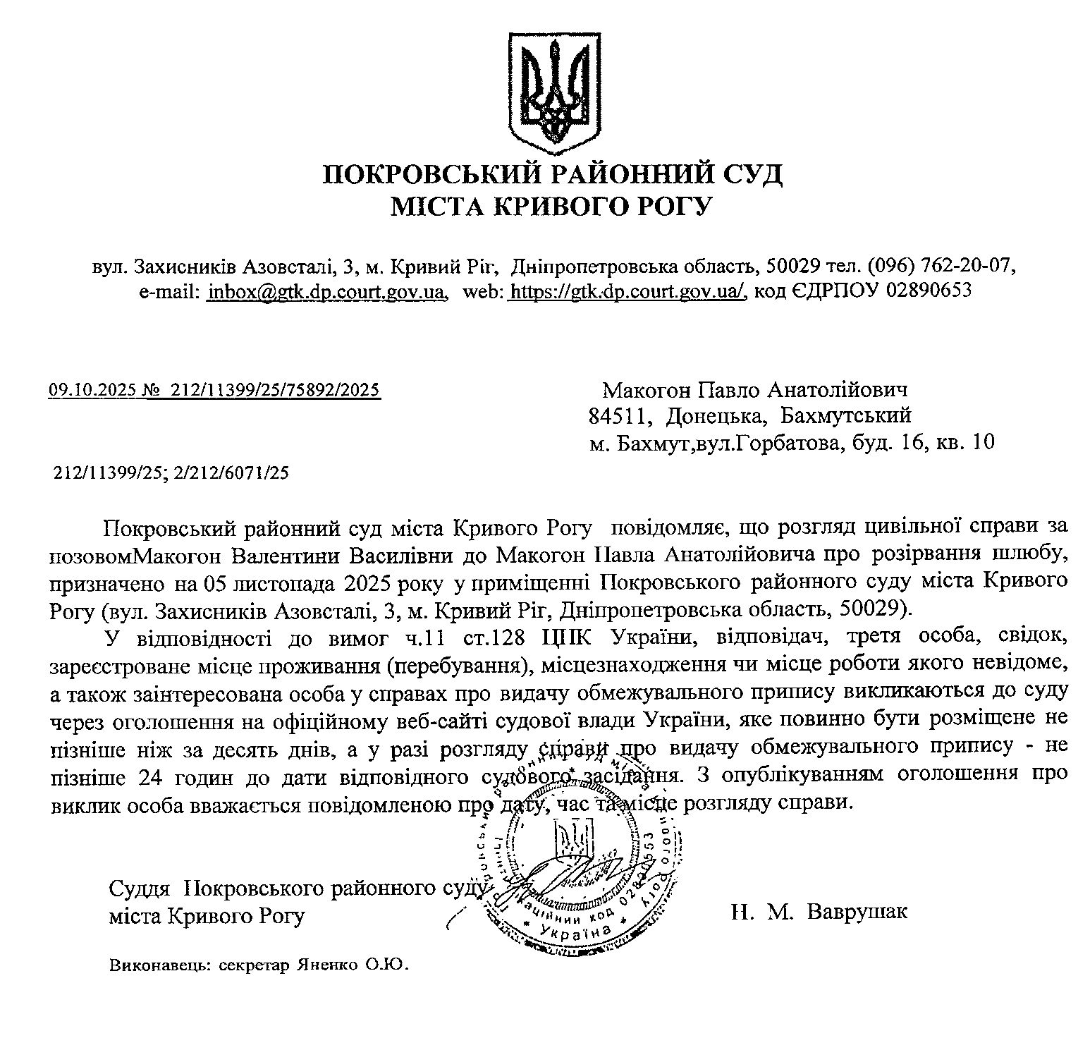 Оголошення про виклик до суду Макогона Павла Анатолійовича