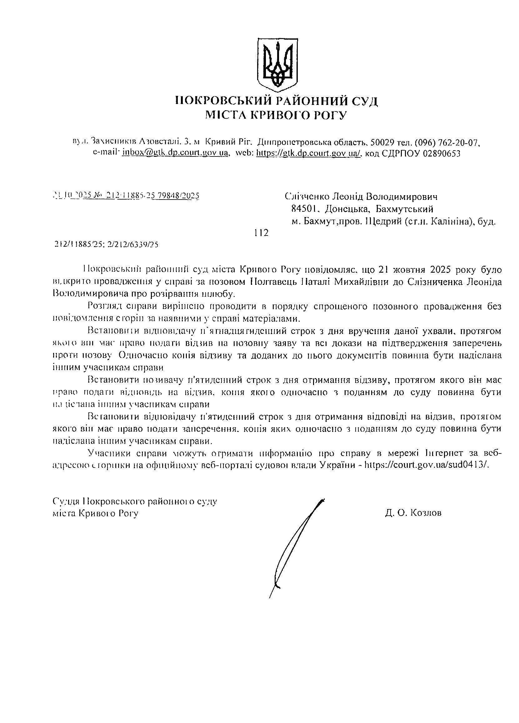 Оголошення про виклик до суду Слізченка Леоніда Володимировича
