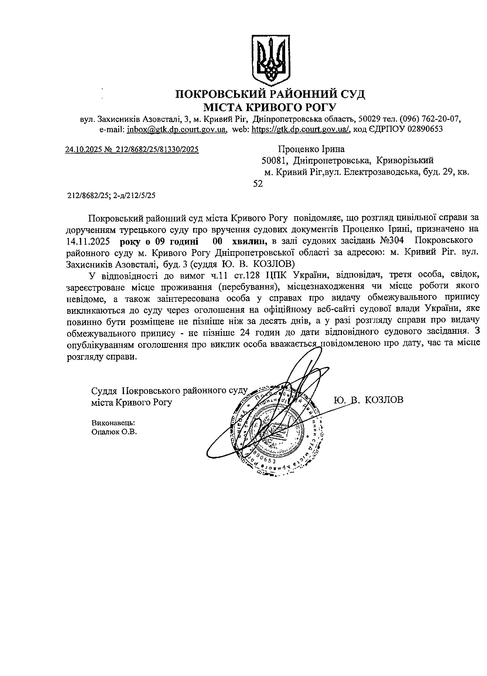 ОГОЛОШЕННЯ ПРО ВИКЛИК ДО СУДУ