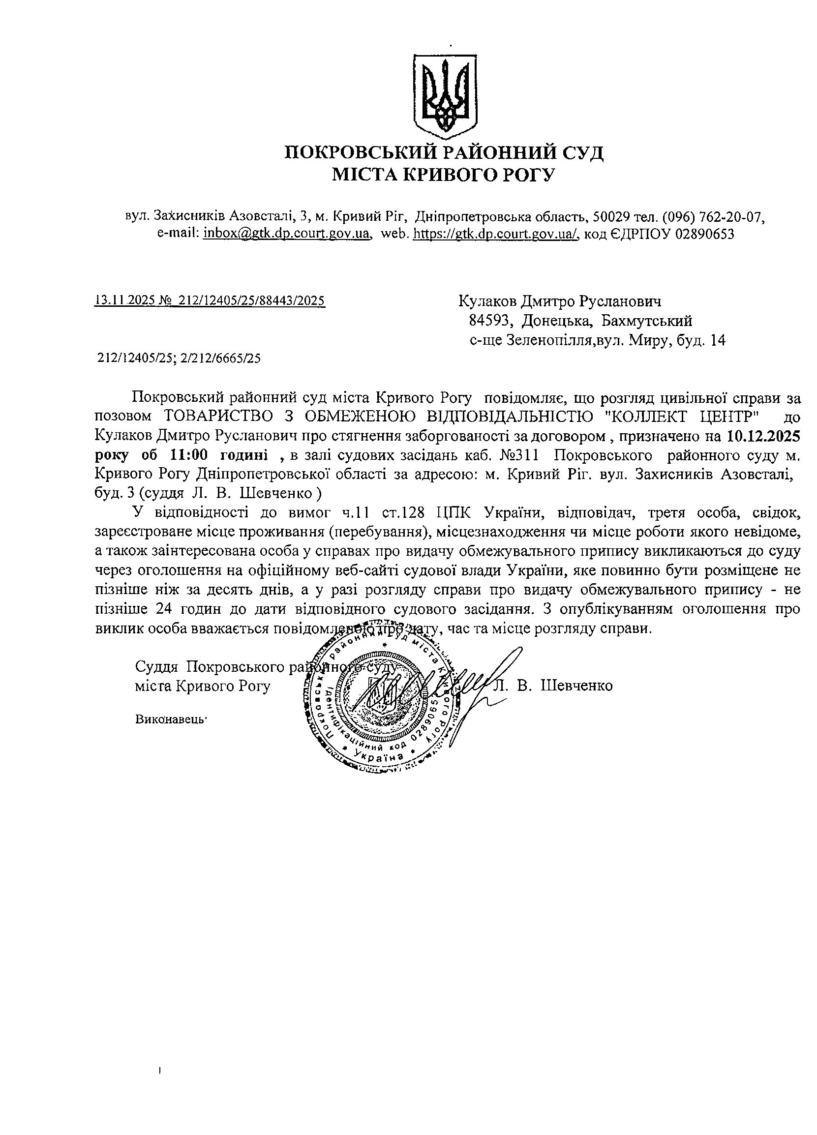 Оголошення про виклик до суду Куликова Дмитра Руслановича