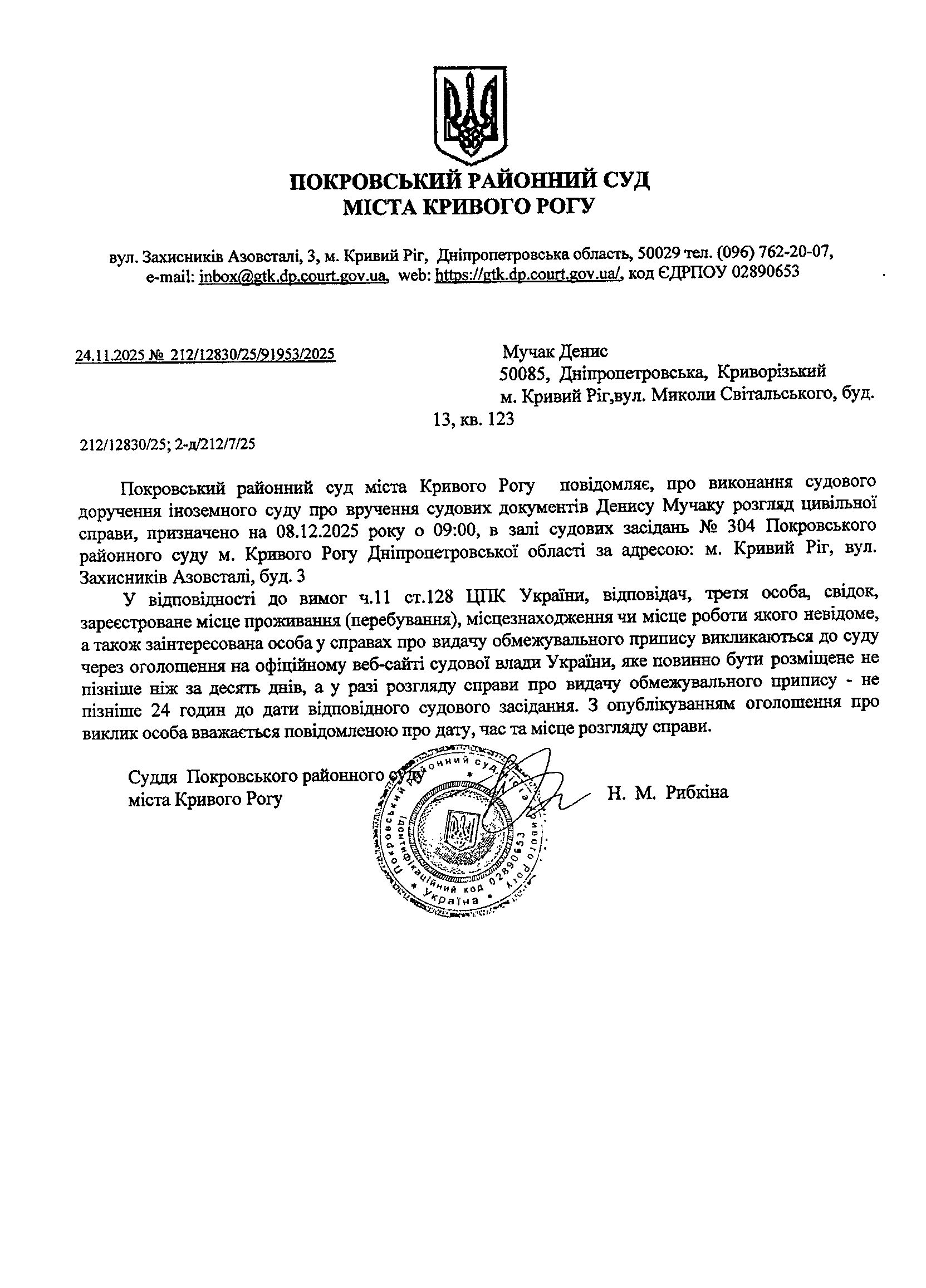 ОГОЛОШЕННЯ ПРО ВИКЛИК ДО СУДУ
