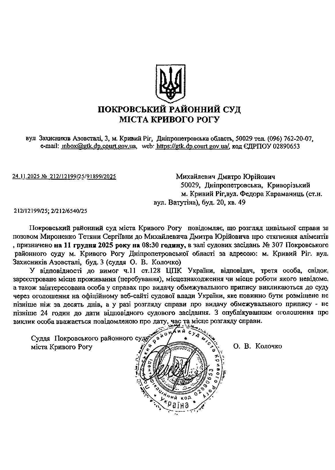 Оголошення про виклик до суду Михайлевича Дмитра Юрійовича
