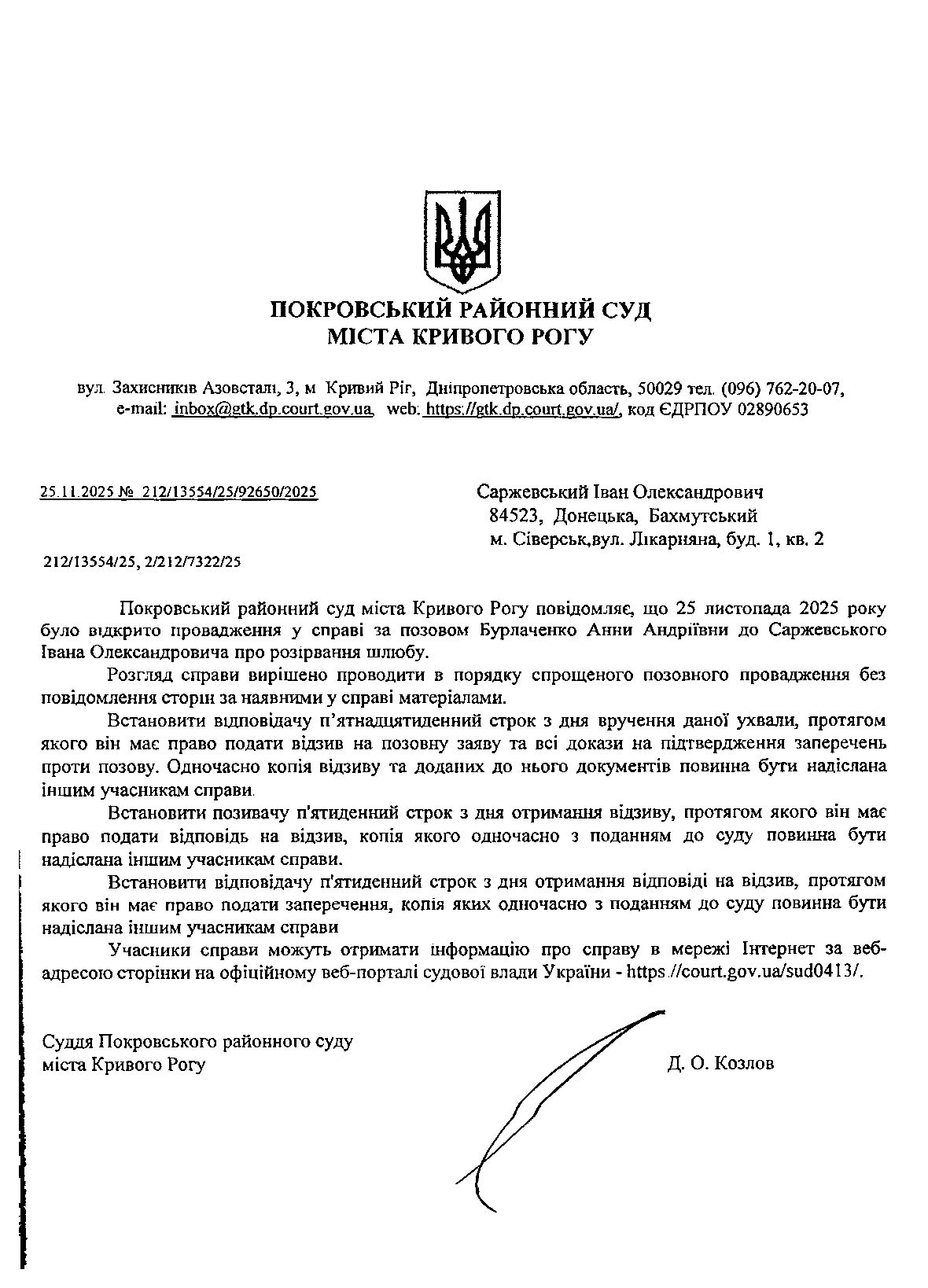 Оголошення про виклик до суду Саржевського Івана Олександровича