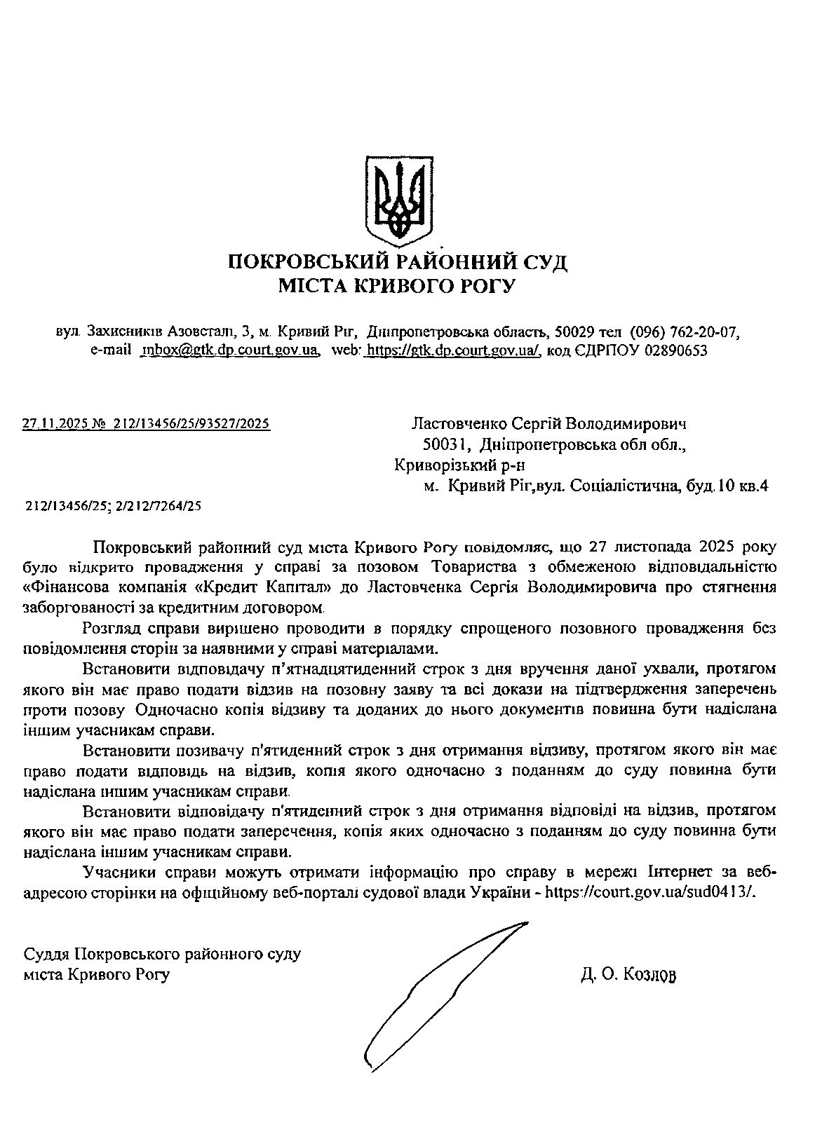 Оголошення про виклик до суду Ластовченка Сергія Володимировича