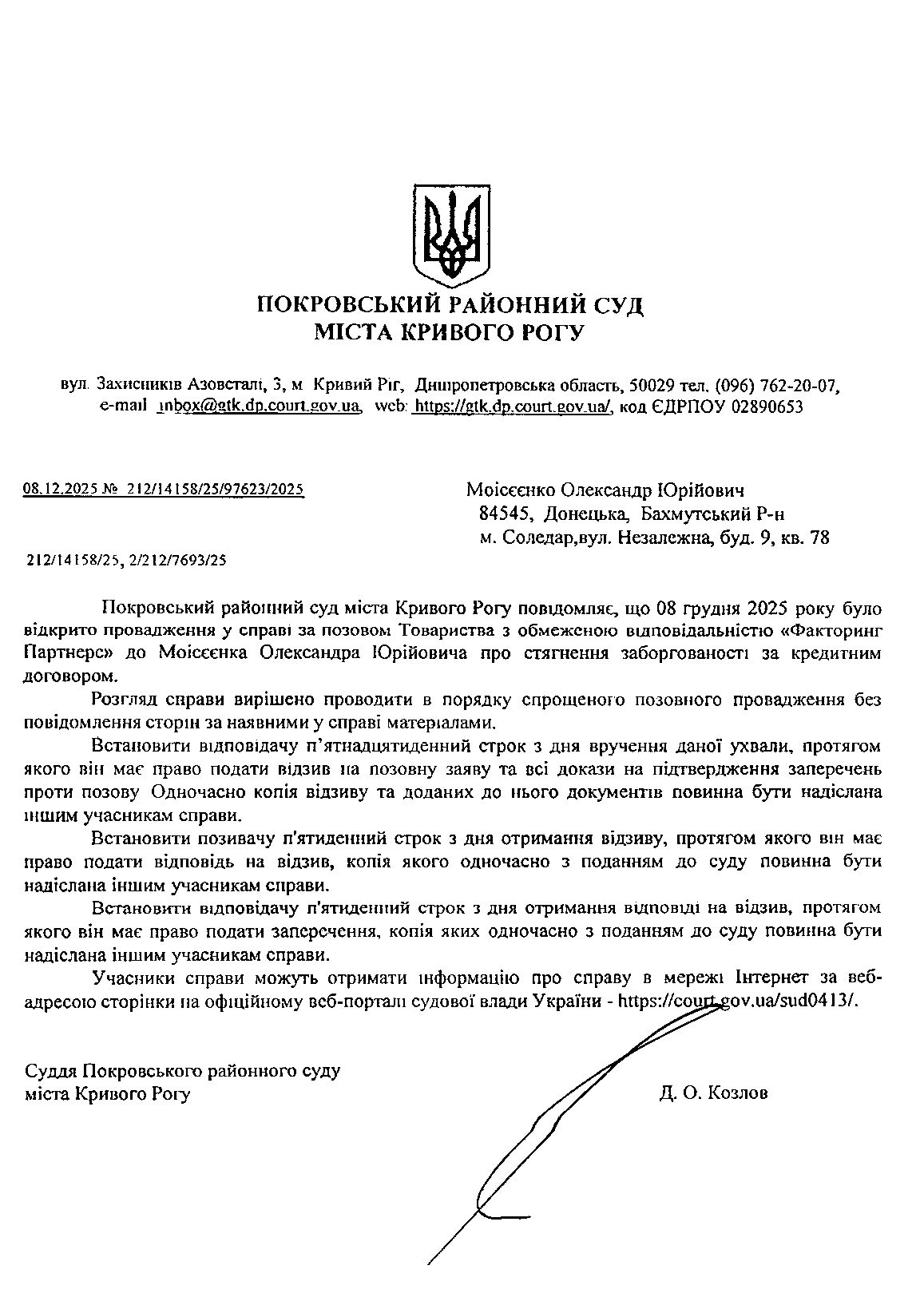 Оголошення про виклик до суду Моісеєнка Олександра Юрійовича