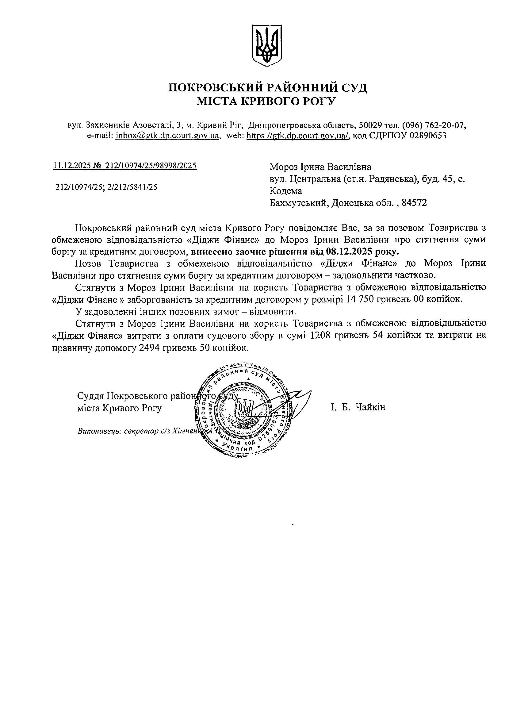 Оголошення про виклик до суду Мороз Ірини Василівни