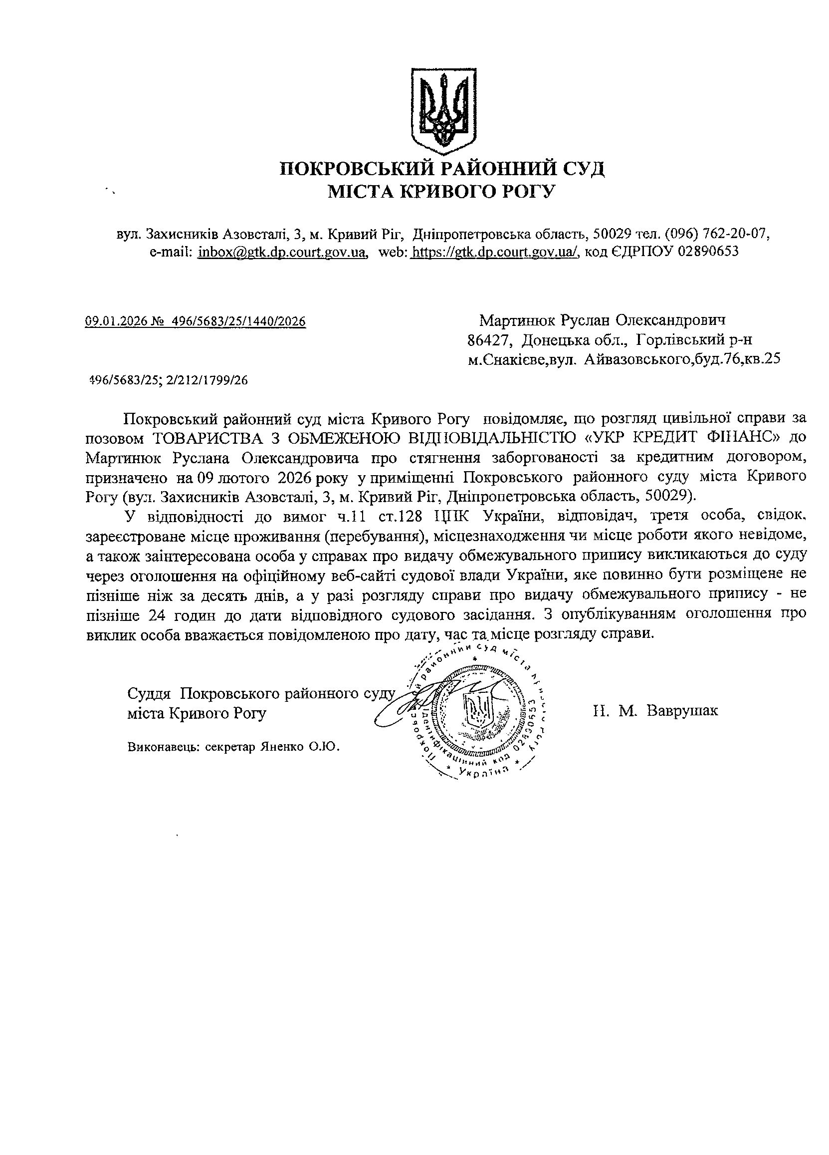 Оголошення про виклик до суду Мартинюка Руслана Олександровича
