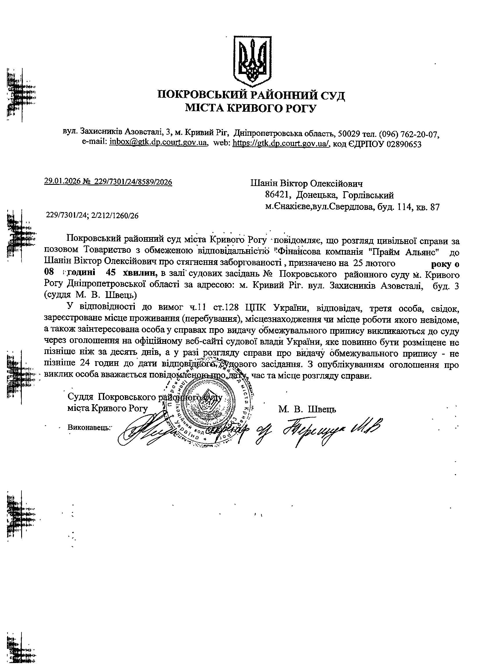 Оголошення про виклик до суду Шаніна Віктора Олексійовича