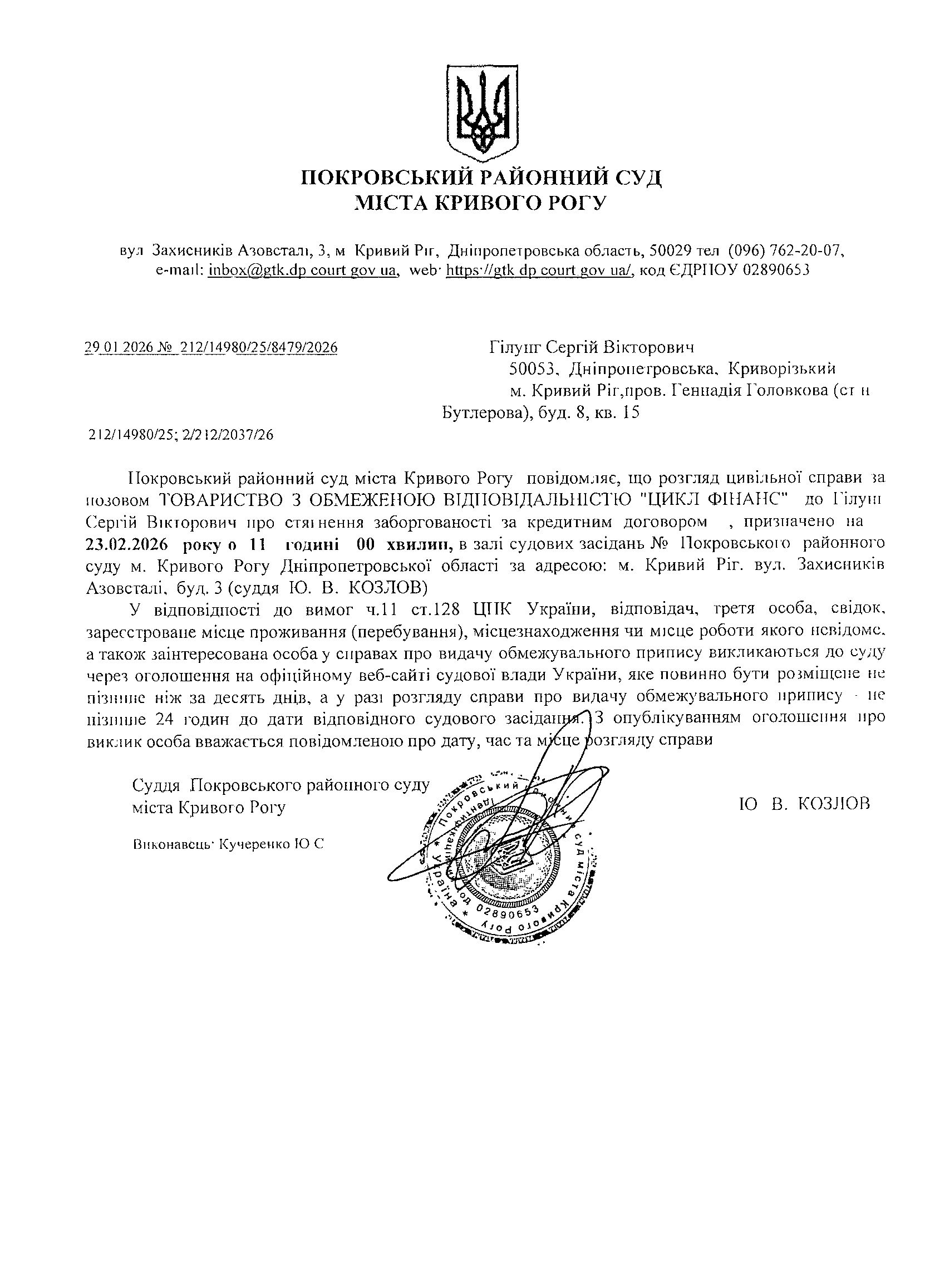 Оголошення про виклик до суду Гілунга Сергія Вікторовича