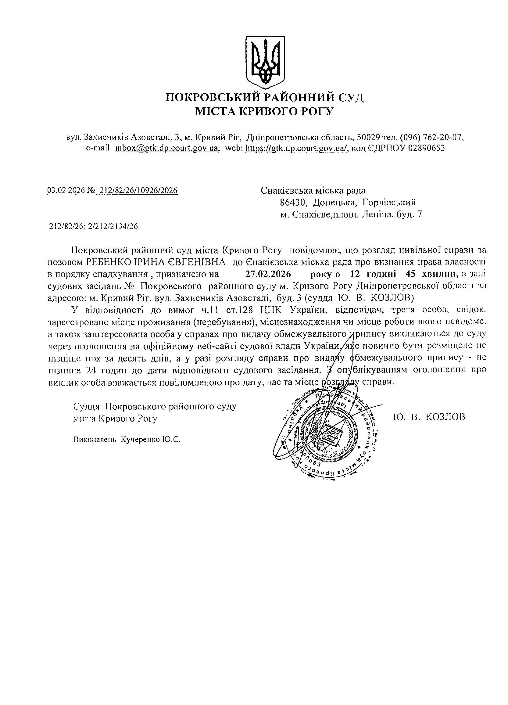 ОГОЛОШЕННЯ ПРО ВИКЛИК ДО СУДУ