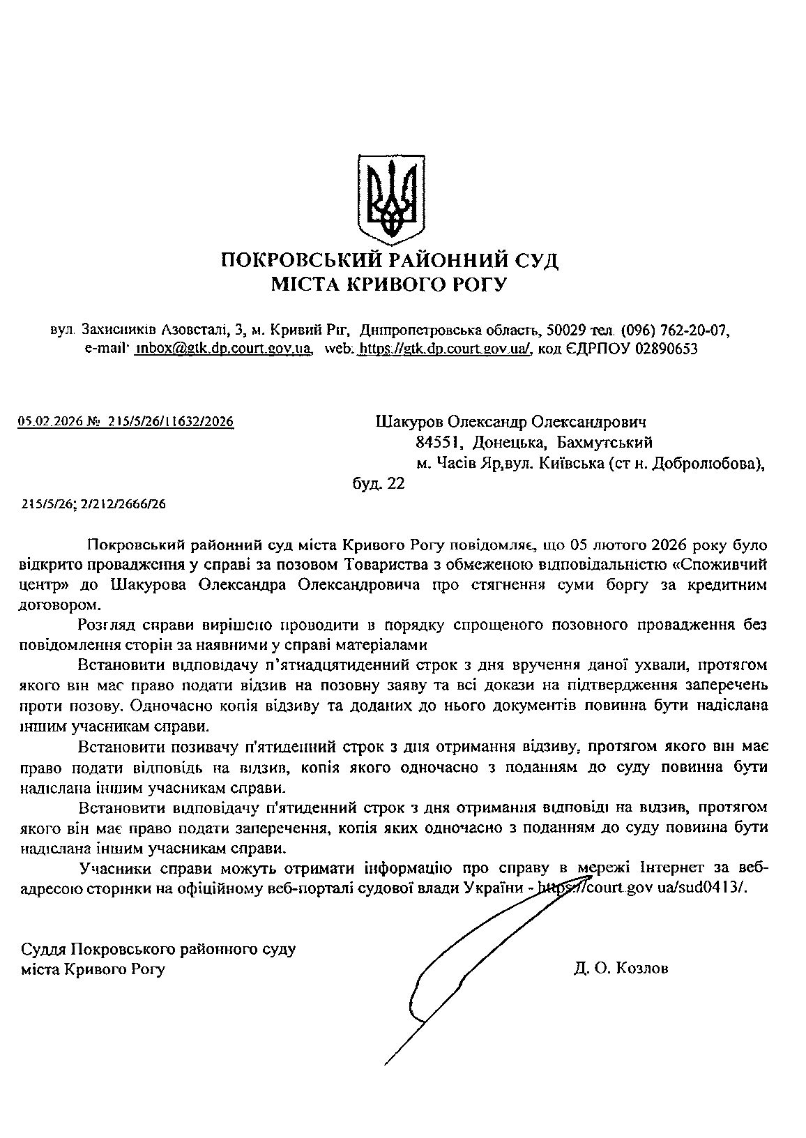 Оголошення про виклик до суду Шакурова Олександра Олександровича