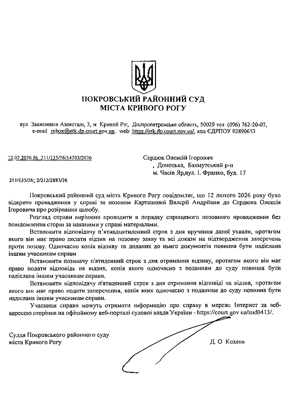 Оголошення про виклик до суду Сердюка Олексія Ігоровича