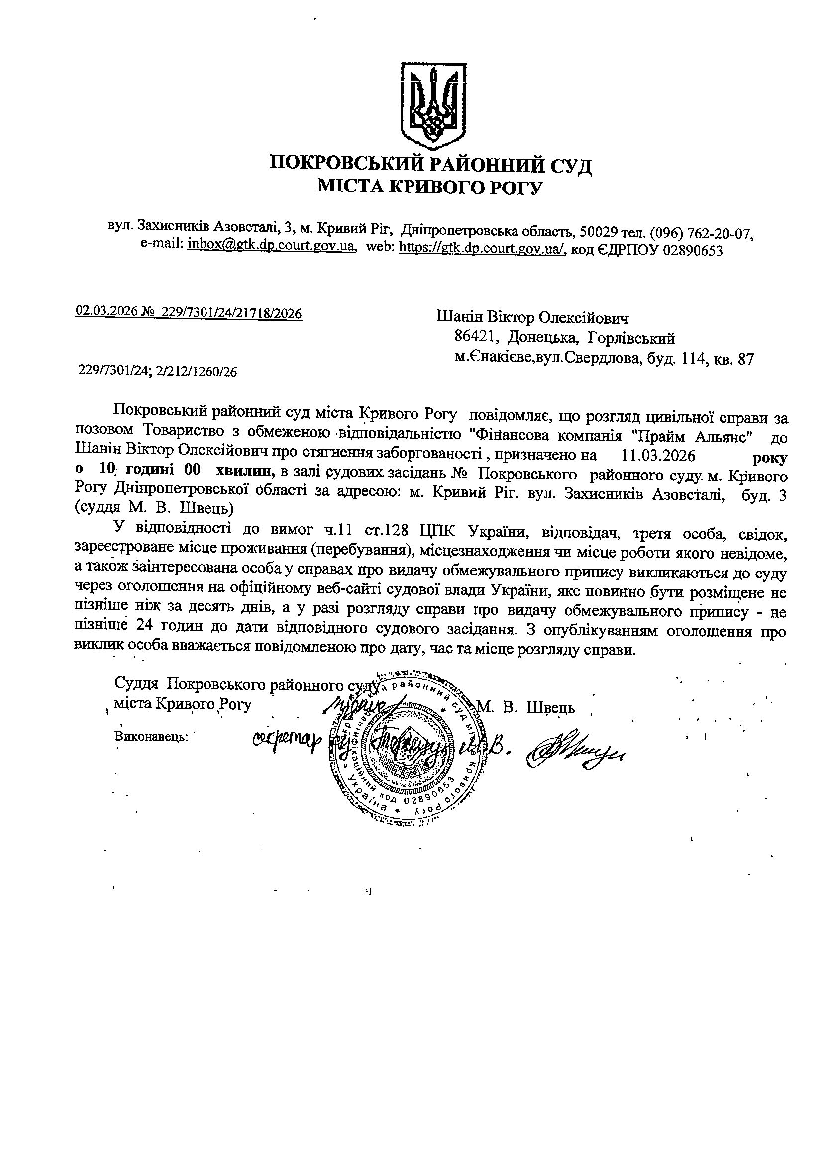 Оголошення про виклик до суду Шаніна Віктора Олексійовича
