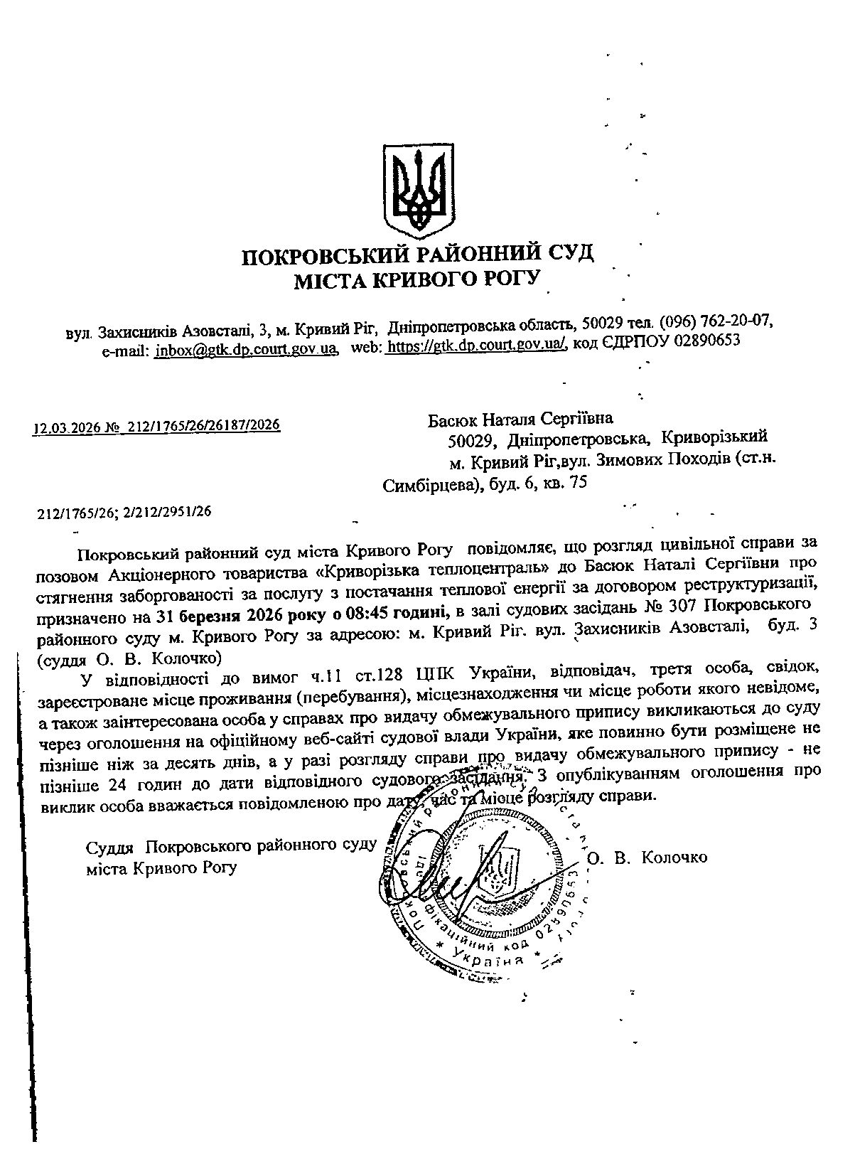 Покровський районний суд міста Кривого Рогу
