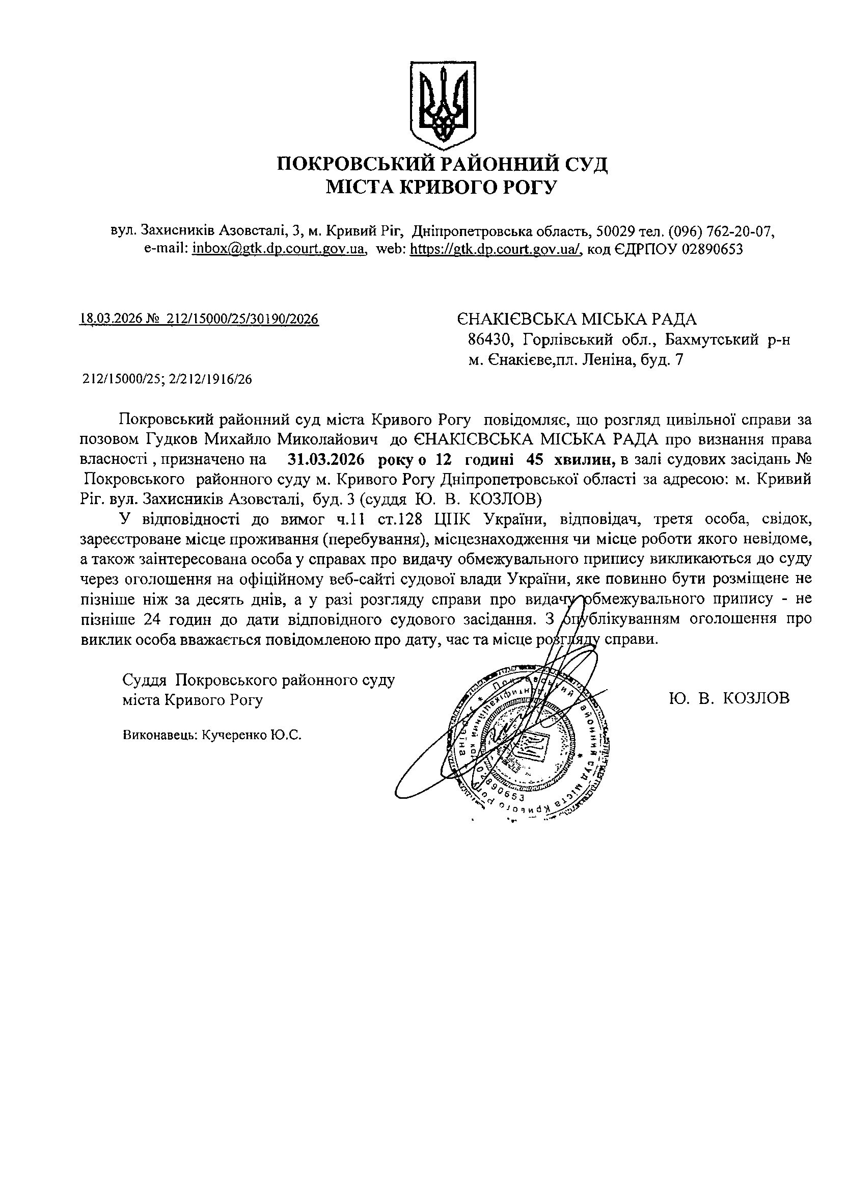 ОГОЛОШЕННЯ ПРО ВИКЛИК ДО СУДУ