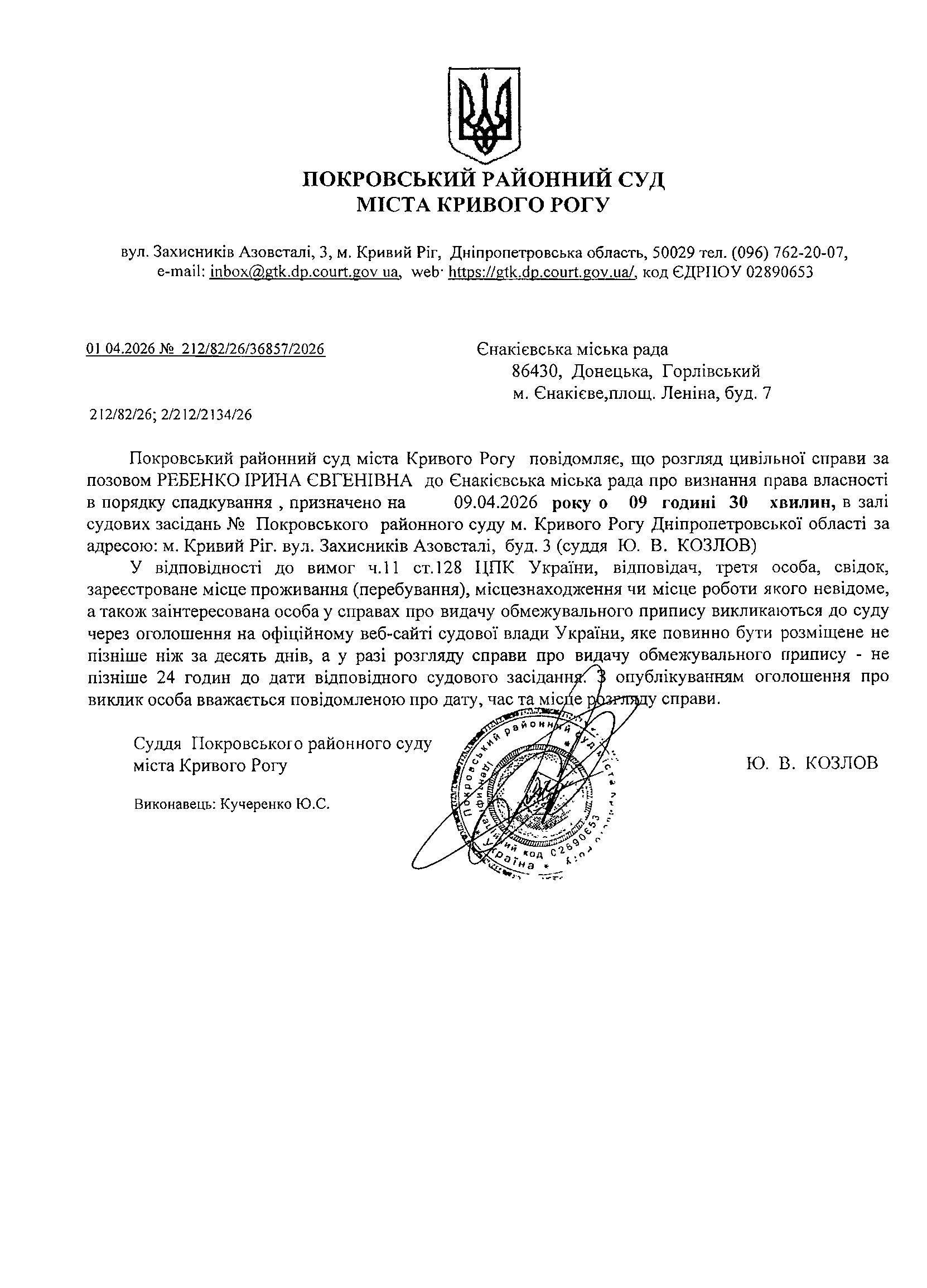ОГОЛОШЕННЯ ПРО ВИКЛИК ДО СУДУ