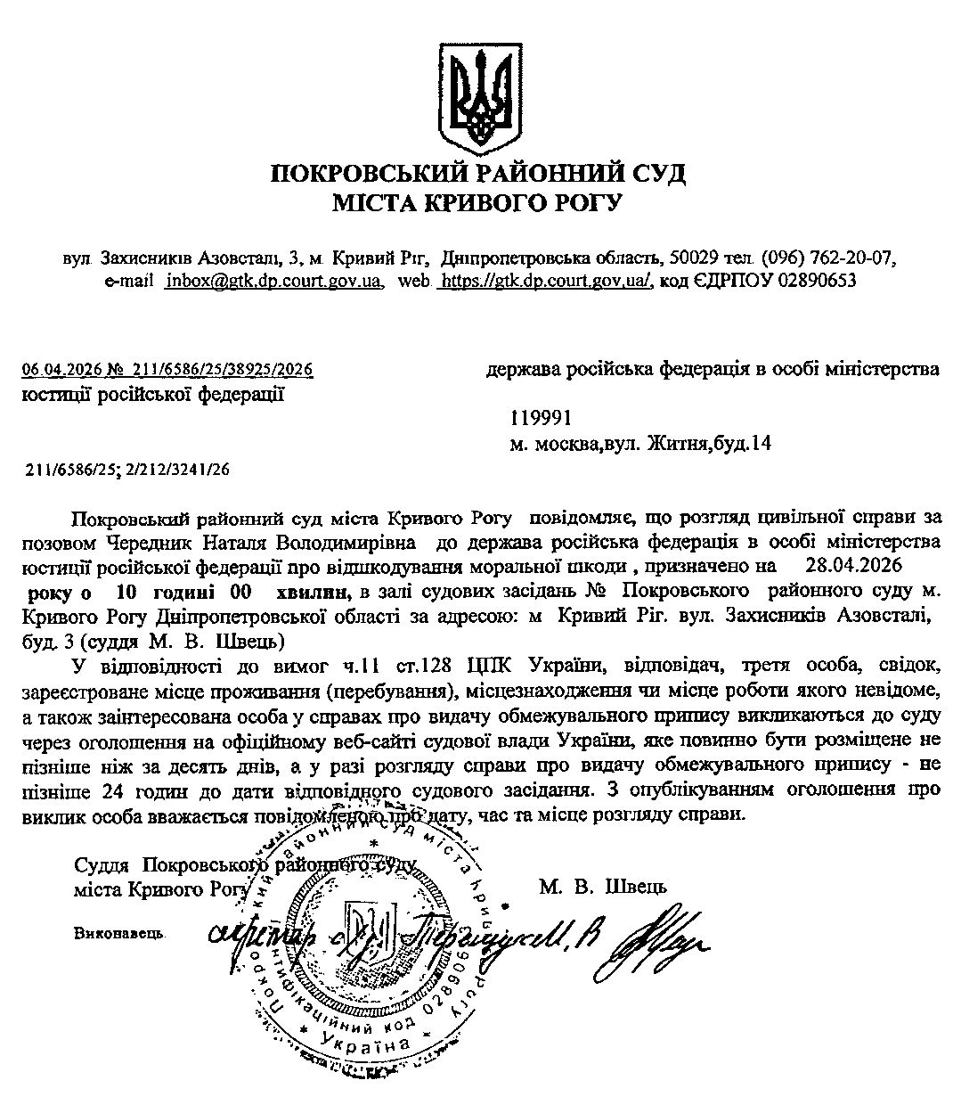 Оголошення про виклик до суду міністерства юстиції російської федерації