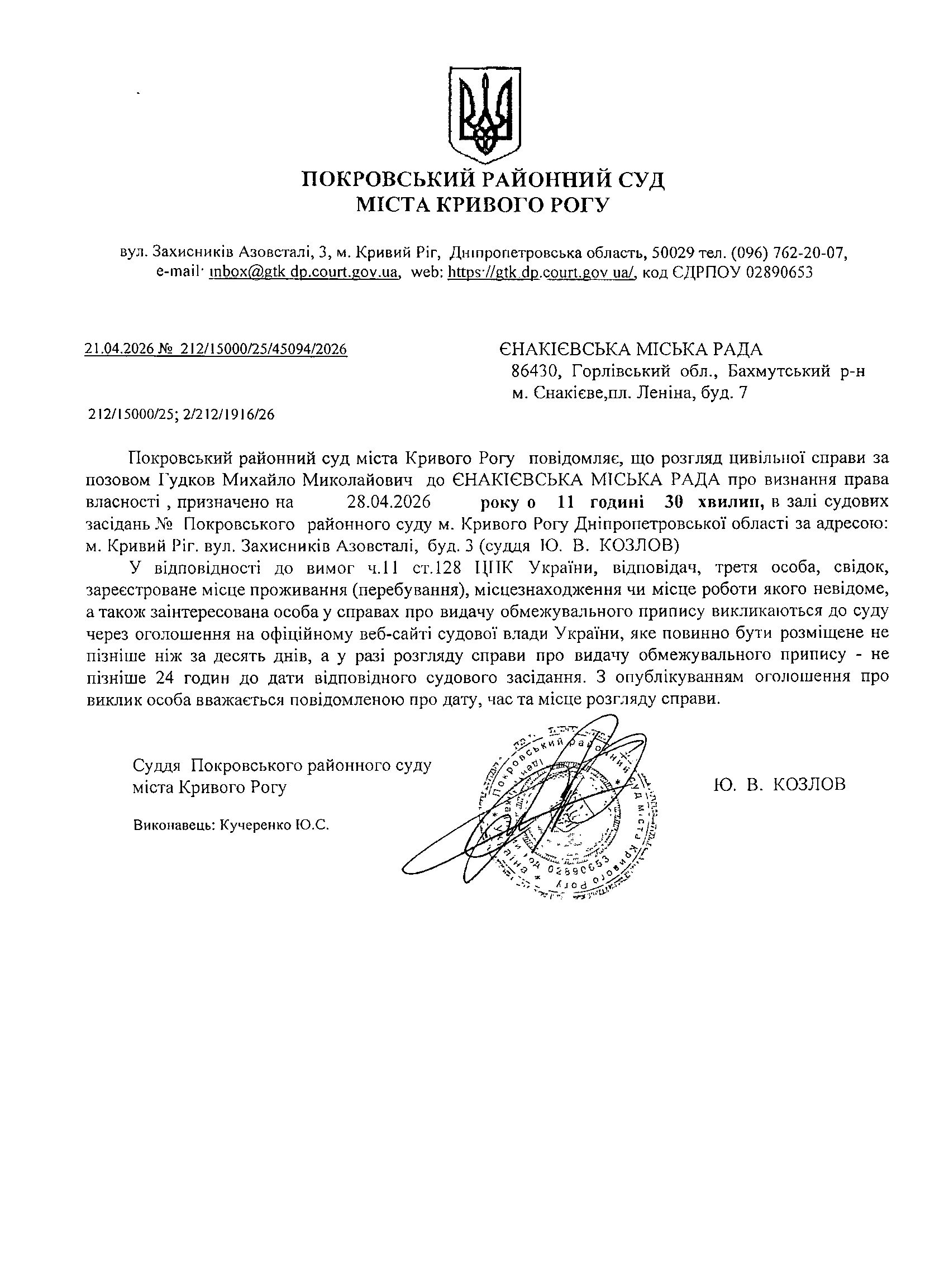 ОГОЛОШЕННЯ ПРО ВИКЛИК ДО СУДУ