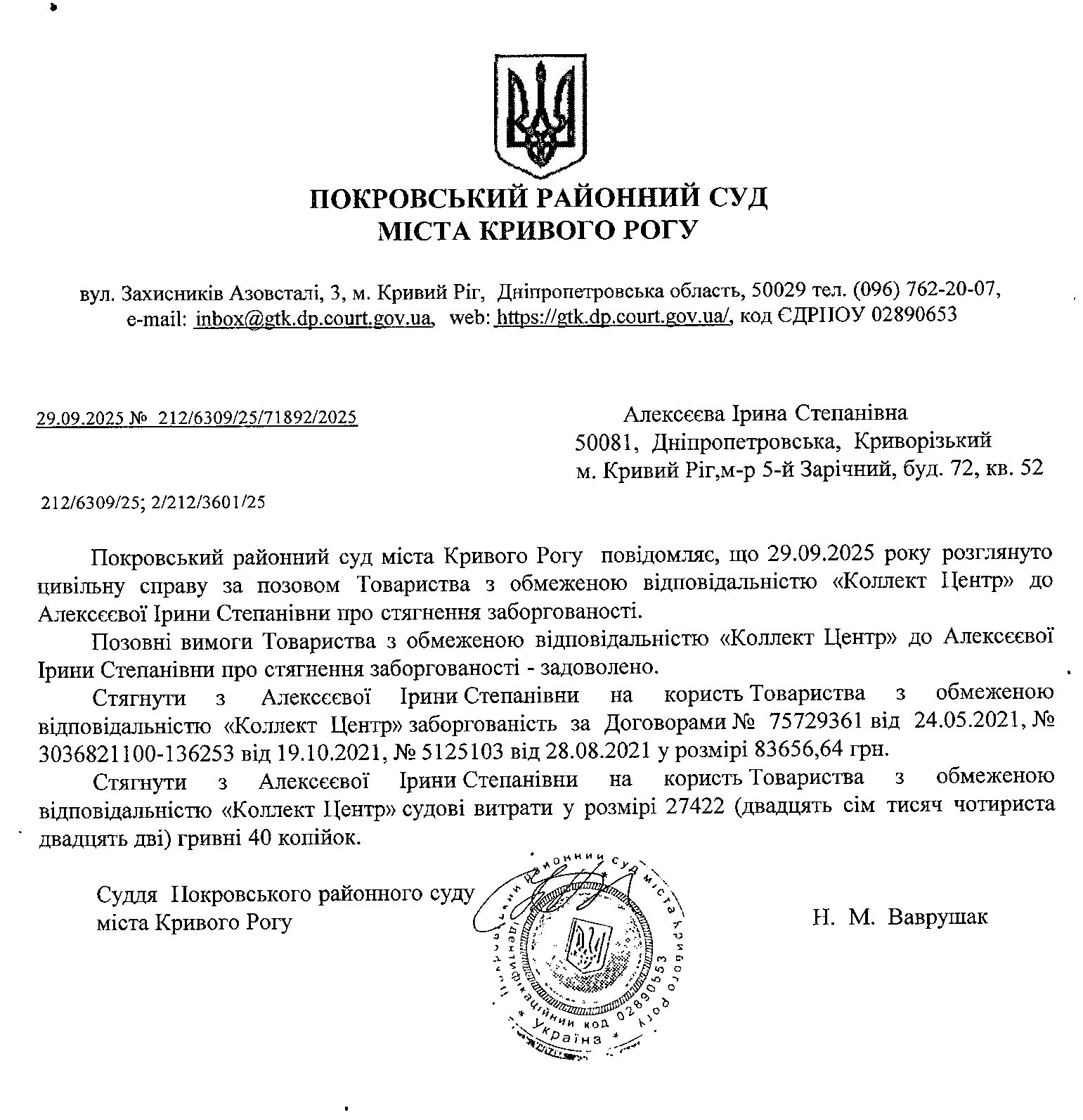 Увага, суд перейменовано з Жовтневий районний суд м. Кривого Рогу