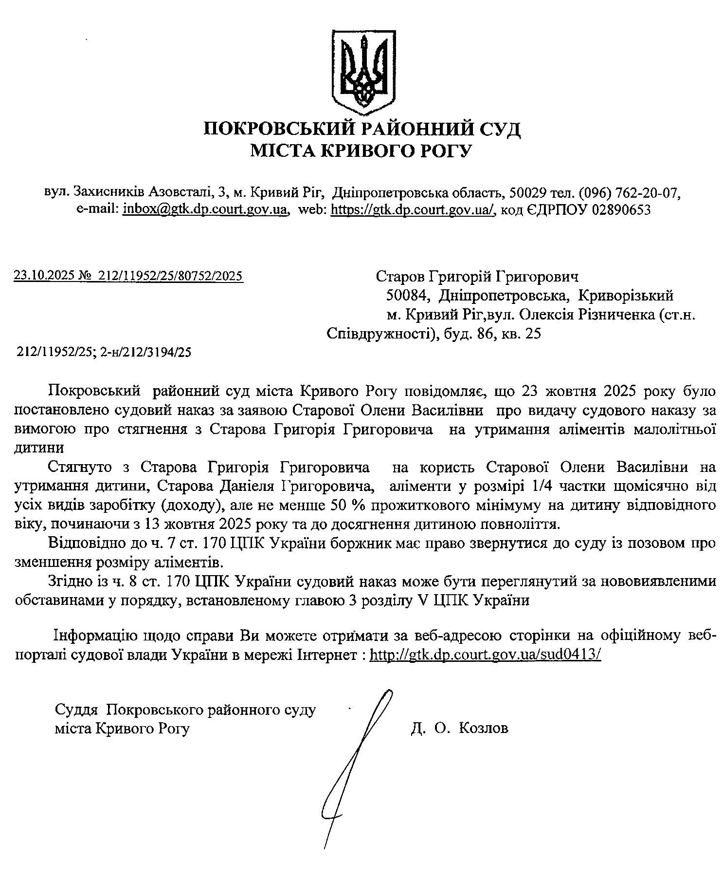 Увага, суд перейменовано з Жовтневий районний суд м. Кривого Рогу