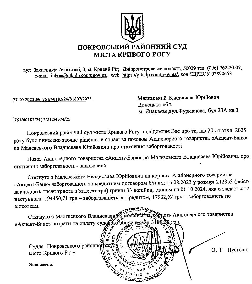 Увага, суд перейменовано з Жовтневий районний суд м. Кривого Рогу