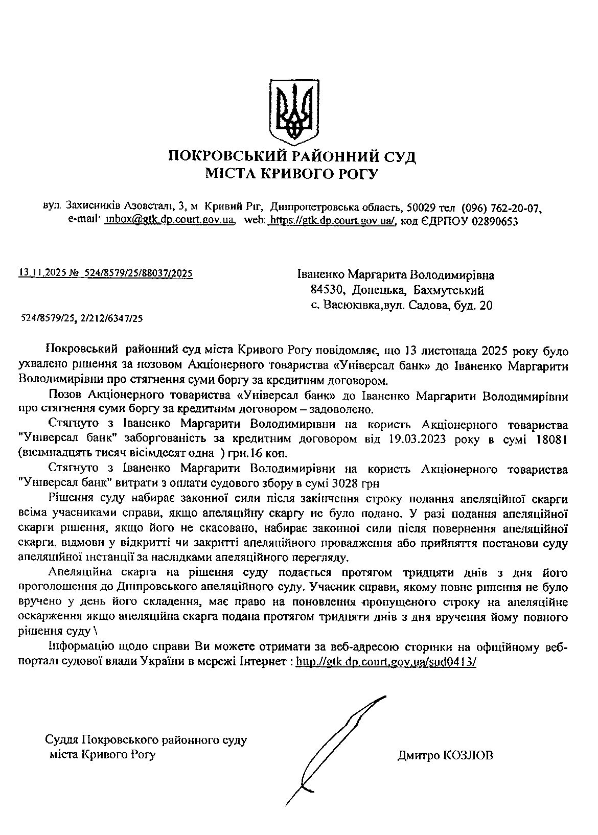 Увага, суд перейменовано з Жовтневий районний суд м. Кривого Рогу