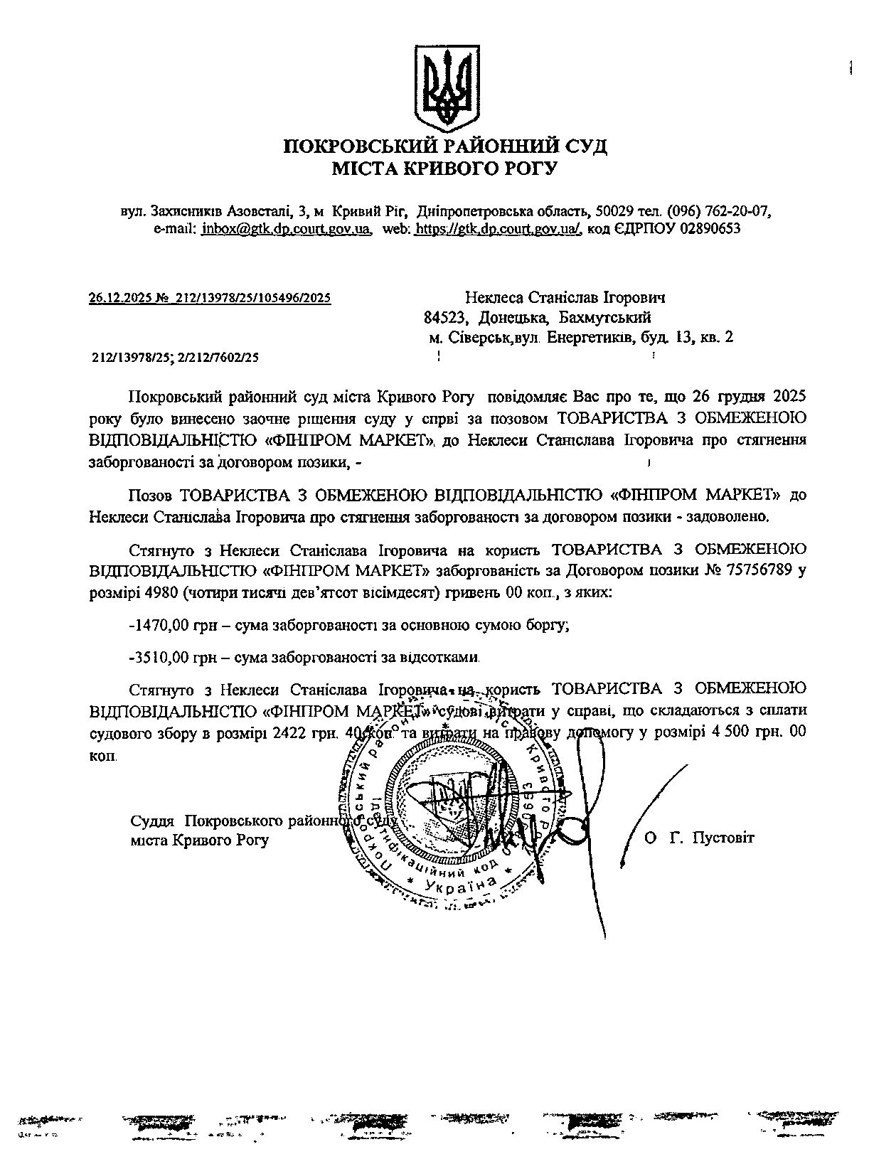 Повідомлення про розгляд цивільної справи за позовом ТОВ з обмеженою відповідальністю "ФІНПРОМ МАРКЕТ" до Неклеси Станіслава Ігоровича про стягнення заборгованості за кредитним договором