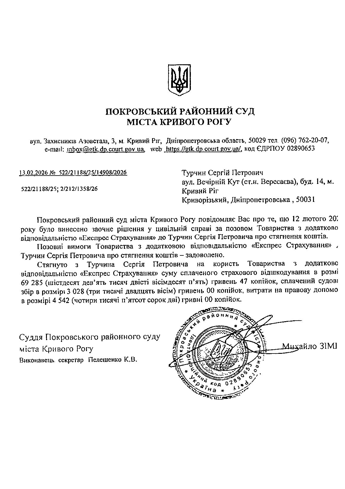 Повідомлення про розгляд цивільної справи за позовом ТОВ з обмеженою відповідальністю "Експрес-Страхування" до Турчина Сергія Петровича про стягнення заборгованості