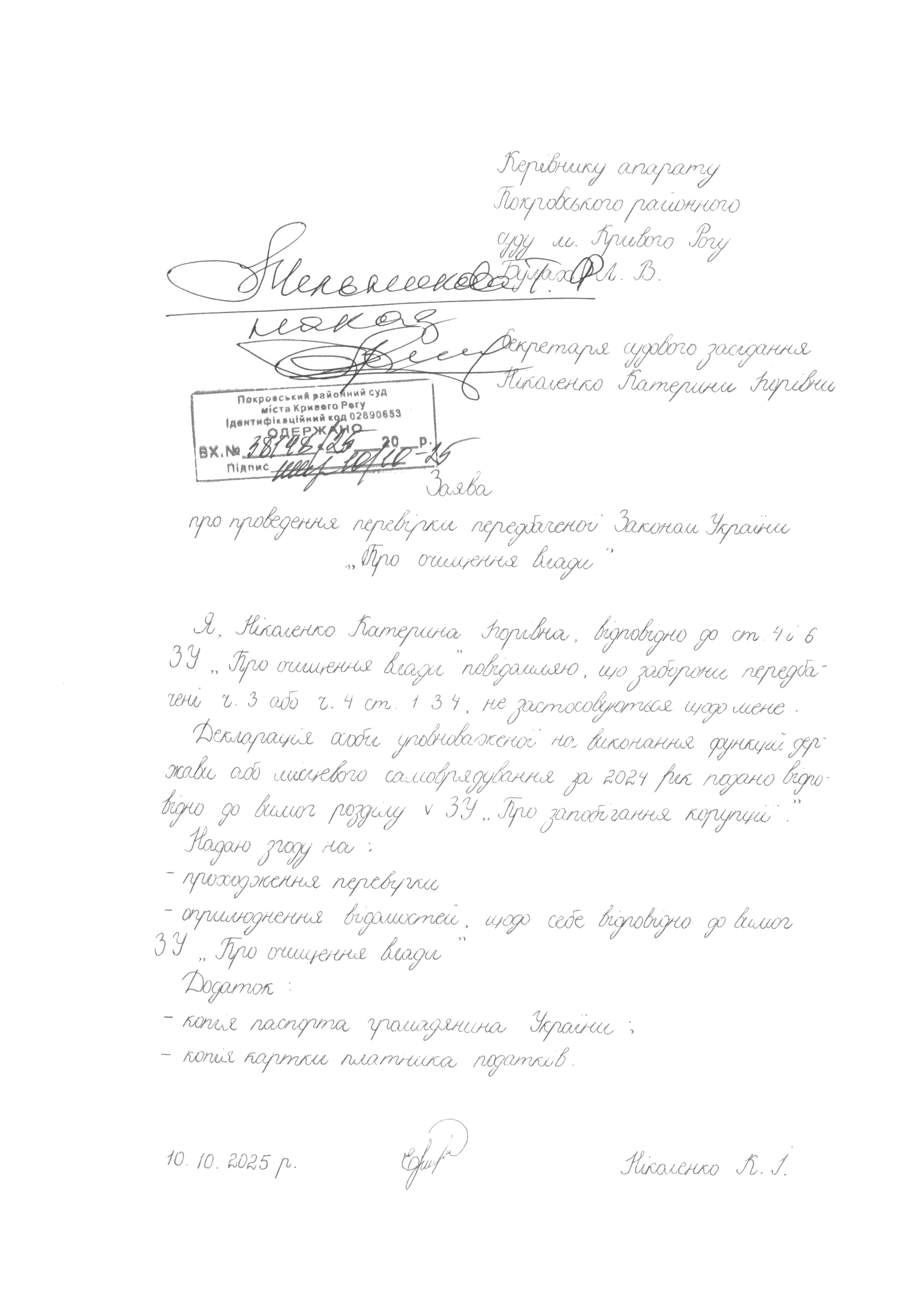 Очищення влади від Ніколенко Катерини Ігорівни